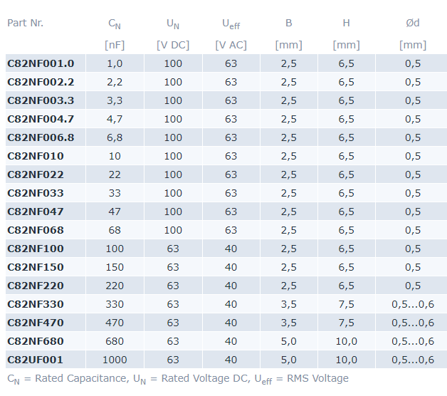 Condensatori MKT, MKS, FKP1