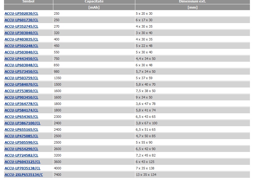 Baterie reîncărcabilă: Li-Po; 3,7V; 250mAh; Term: cabluri