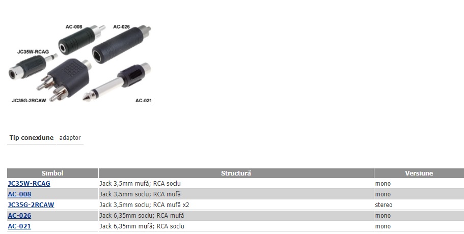 Adaptor mufa RCA; mama, jack 3.5mm, tata, mono, JC35W-RCAG