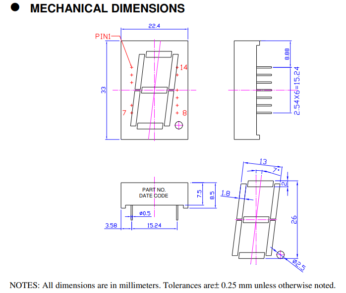 Afisaj led 26mm, 7 segmente, albastru, AC, OPD-S10020LB-BW, OPTO PLUS LED CORP