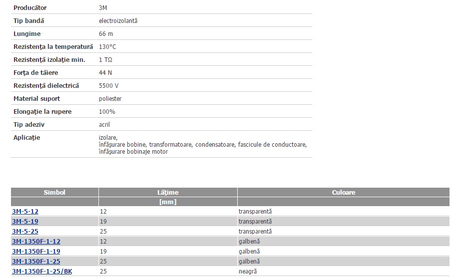 Banda poliester izolatoare, 5KV, 25mmx66m, 3M-1350F-1-25