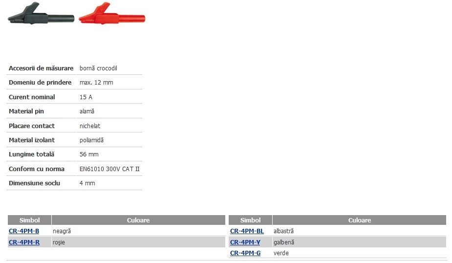 Crocodil izolat; 15A; 300VAC, negru, CR-4PM-BK