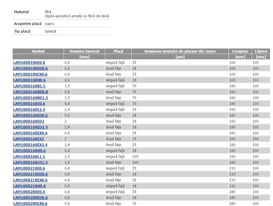 Tip placă laminat