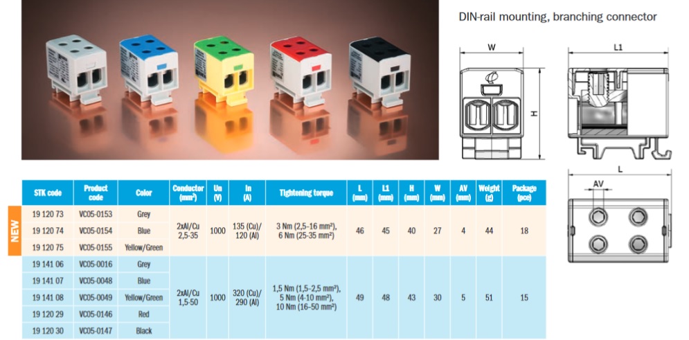 Conector sina, 480A, 690V, 1.5-50mm2, 3 pista, 6 borne, alb, T023050, OUNEVA