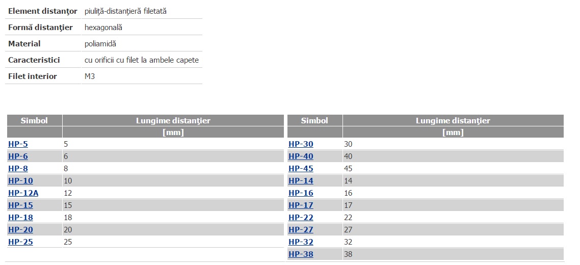 Distantator plastic, M3x45mm, HP-45