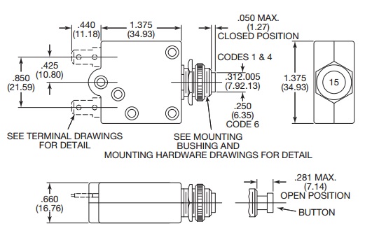Intrerupator 2A, SPST-NC: protectie supracurent; 250VAC/32VDC, W58-XB1A4A-2