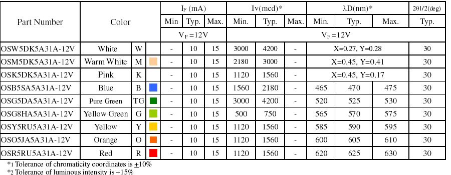 Led 12V, 5mm; galben; 1120-1560mcd; convex; OSY5RU5A31A-12V