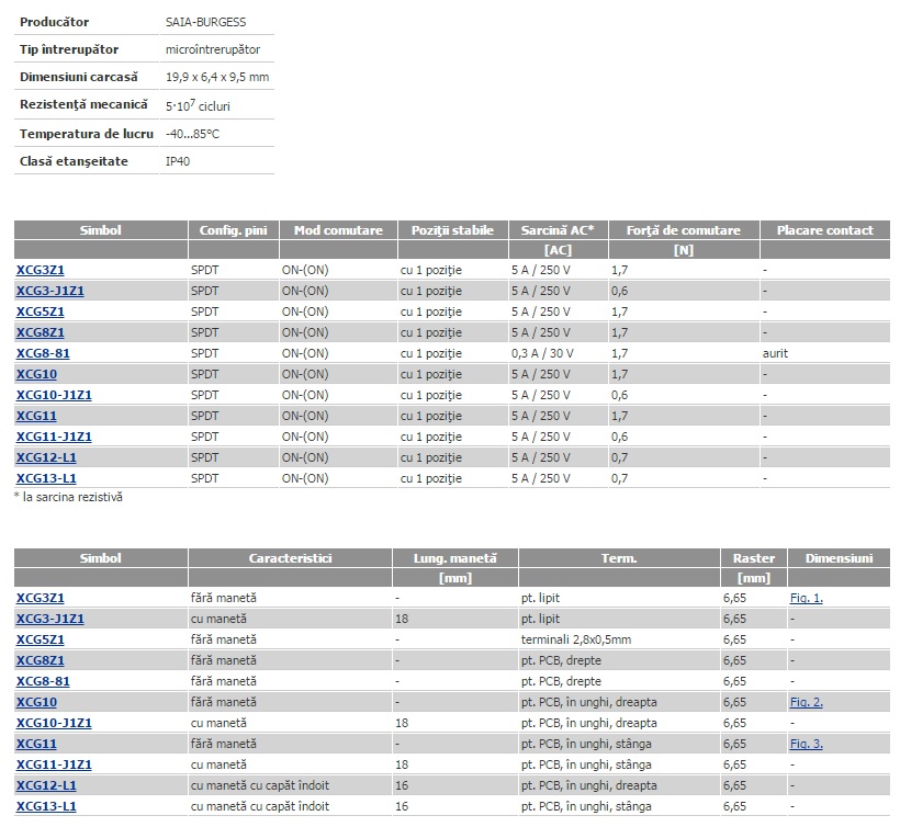 Microintrerupator 5A, 250V, ON-(ON), XCG8-Z1, SAIA-BURGESS