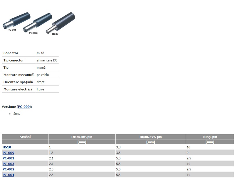 Mufa alimentare DC, 5.5x2.5X9.5mm, PC-002