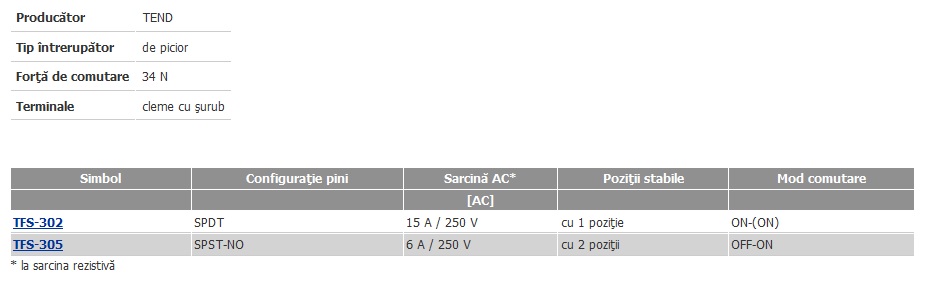 TFS-305 Intrerupator de picior bistabil, SPST-NO, 6A