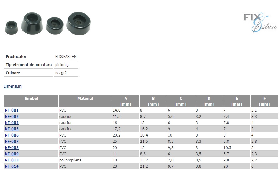 NF-006 Piciorus cu insurubare; PVC; neagra; A:20,2mm; B:18,4mm; C:10mm