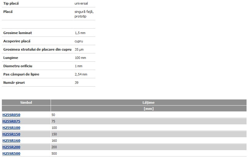 Placa cablaj test, 500x100mm, 39 de siruri, pas 2.54mm, RAD-710-7