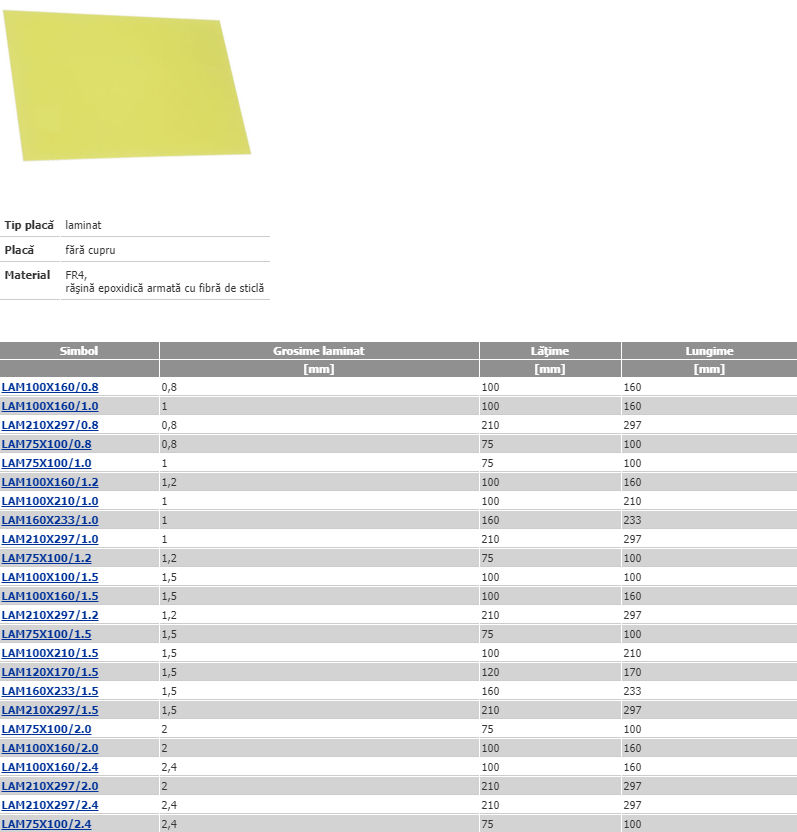 Placa fibra sticla, laminat, 100x210mm, 1.5mm, LAM100X210/1.5