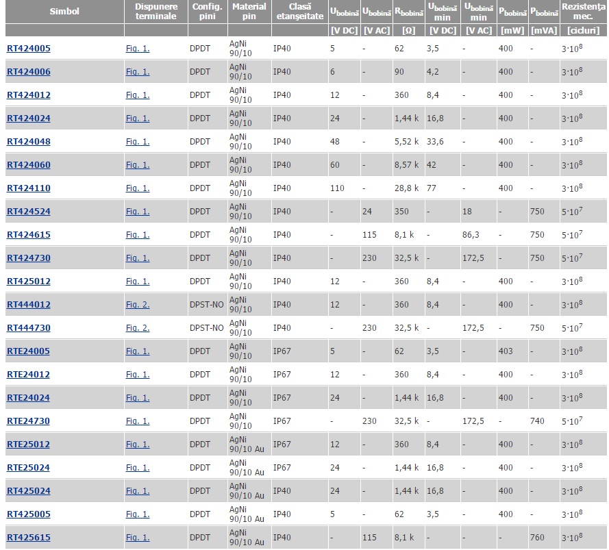 Sarcină admisibilă contacte DC (la sarcina rezistivă) 8 A / 30 VDC