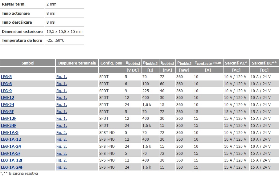 LEG-24 Releu:electromagnetic; Config.pini:SPDT; 24V DC; Montare:PCB RoHS