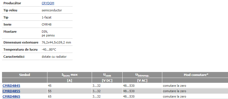 Releu Solid State, 45A, 48-530VAC, CMRD4845, CRYDOM