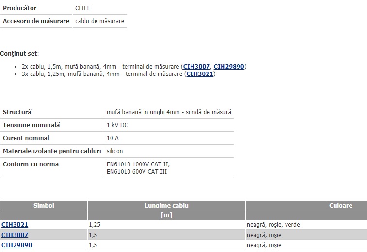 Conţinut set 2x cabluri de măsurare