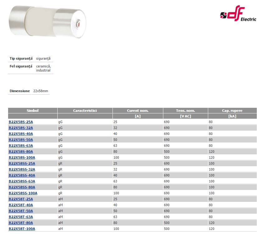 Siguranta 50A, intirziere, 22x58mm, 690V, B22X58T-50A