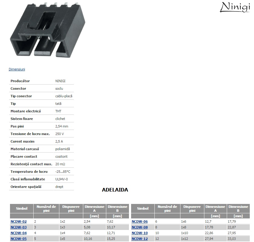 NCDW-04 Soclu tata NCD pitch 2,5mm4 4pini