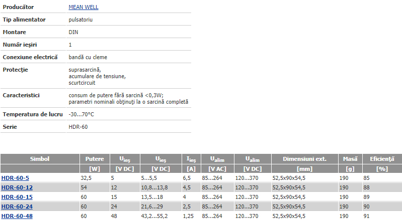 datasheet (HDR-60.PDF, 732 Kb) [Descărcare]