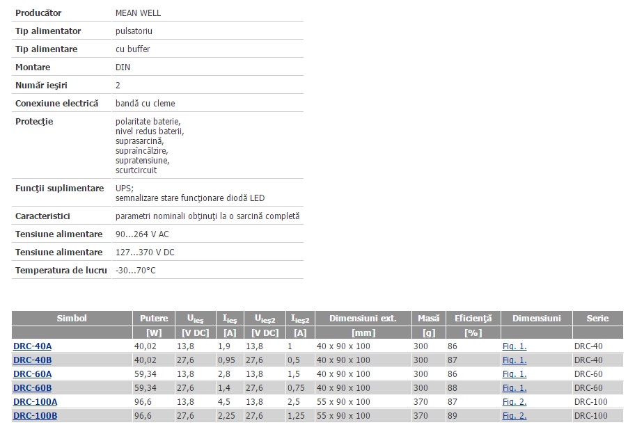 Sursa 27.6VDC, UPS, 0.95A, sina, cu incarcator baterie, buffer, DRC-40B