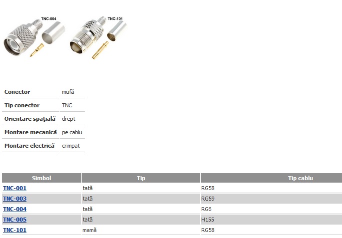 Mufa TNC, tata, 50 ohmi, pt cablu RG58, TNC-001